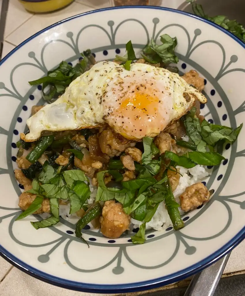 Thai Basil Chicken with Green Beans and Spinach (Pad Ka Prao)