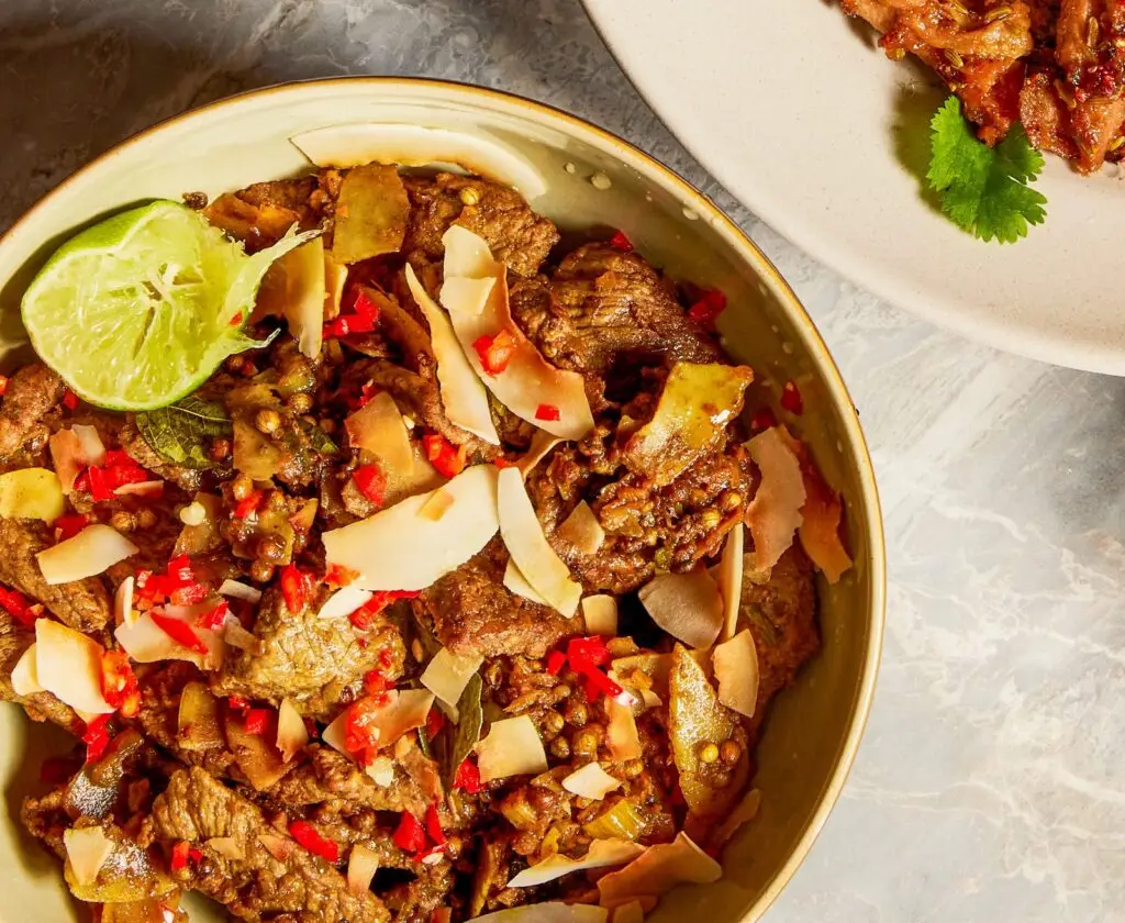 Goan-Style Chili-Fry with Beef, Tomatoes, and Potatoes