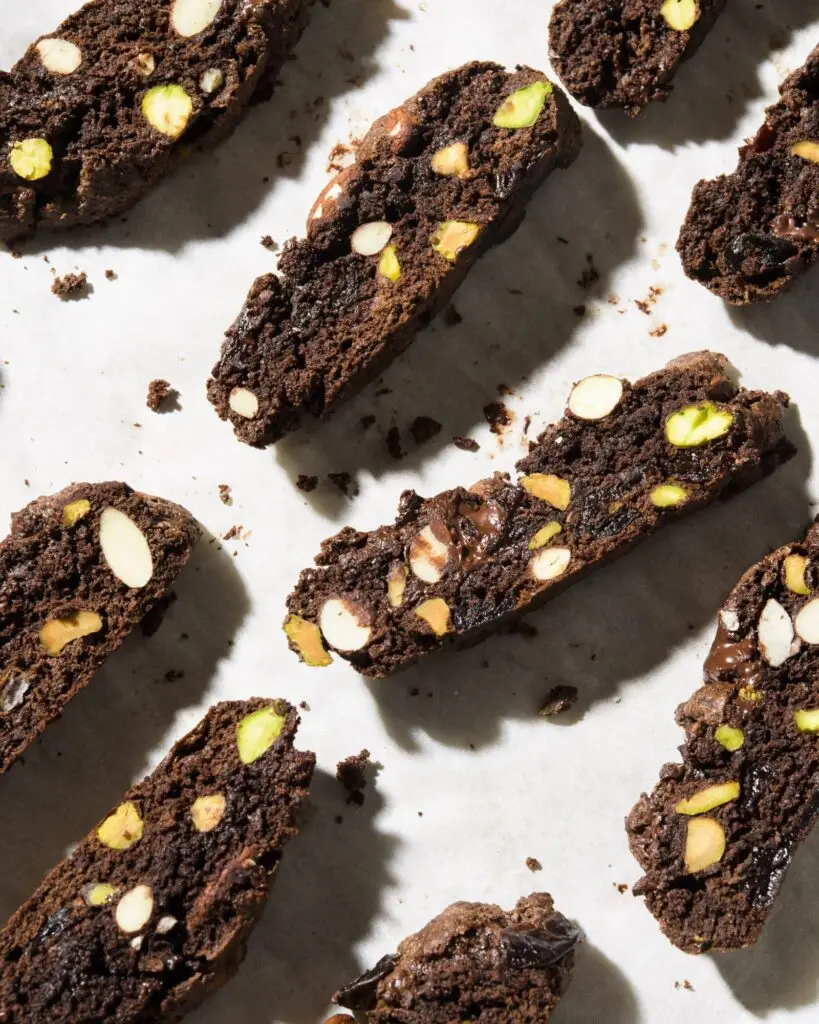 Chocolate Biscotti with Pistachios, Almonds and Dried Cherries