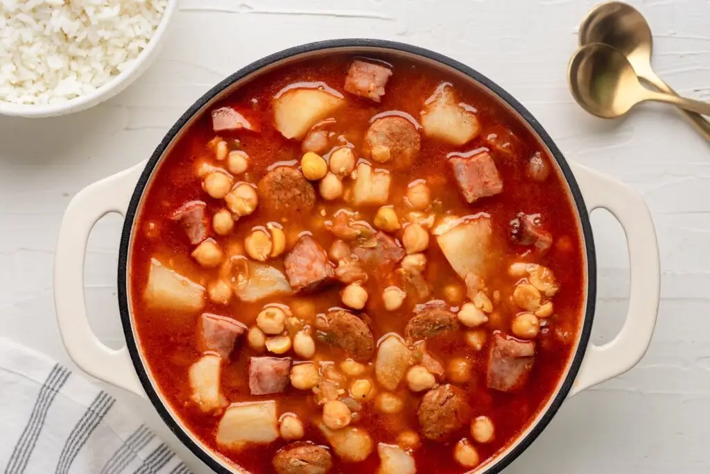 This Potaje de Garbanzo is a hearty Cuban chickpea stew made with garbanzo beans (or chickpeas), chorizo, ham, veggies, and potatoes. Perfect for any day of the week or time of year! Serve with rice, sliced avocado, or some crusty bread. Your home will smell so delicious after making this stew!