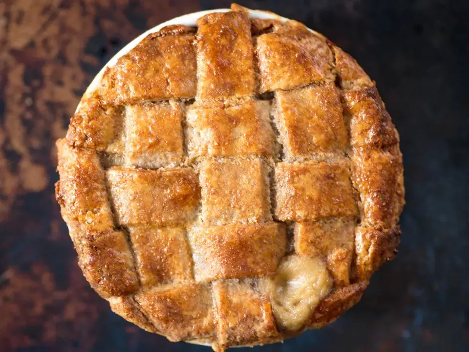 Stella Parks | BravetartWhole wheat flour makes this flaky crust especially tender, with the nutty, toasted aroma of whole wheat bread. Its heartiness is perfect for savory applications like chicken pot pie and quiche, but it's graham-like flavor is an excellent match for fall fruit pies like apple and pear.Why it works:Whole wheat flour provides flavor and tenderness, while all-purpose flour adds strength.Compared to my Old-Fashioned Flaky Pie Dough this recipe uses less butter and more water to offset the natural tenderness of whole wheat flour.One round of folding creates eight major layers of flakiness with minimal fuss.Refrigerating the dough after shaping ensures it's fully chilled and relaxed, preserving its flakes in the oven.
