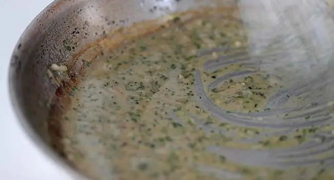 • Remove the pan from the burner and add in 1/4 cup of the herb butter and whisk until melted. Reserve the remaining in the freezer for a later date!
