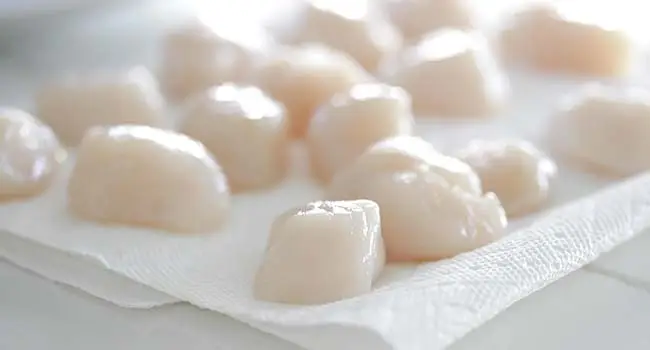 • If you have the option always buy dry-packed scallops.