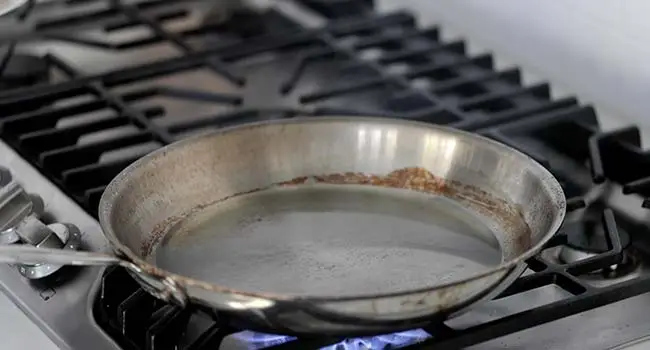 • Heat 2 tablespoons of oil in a sauté pan over high heat until it begins to lightly smoke.