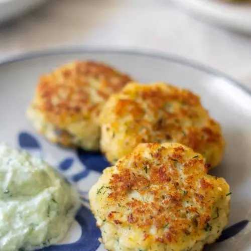 • Serve the fish cakes hot together with the cucumber yogurt for dipping.