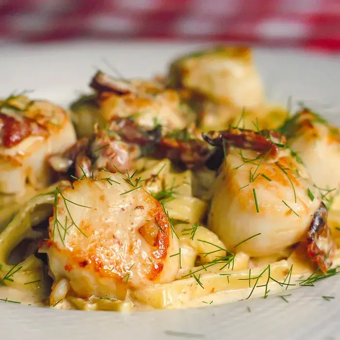 - Serve the scallops over the fettuccine and sauce.
