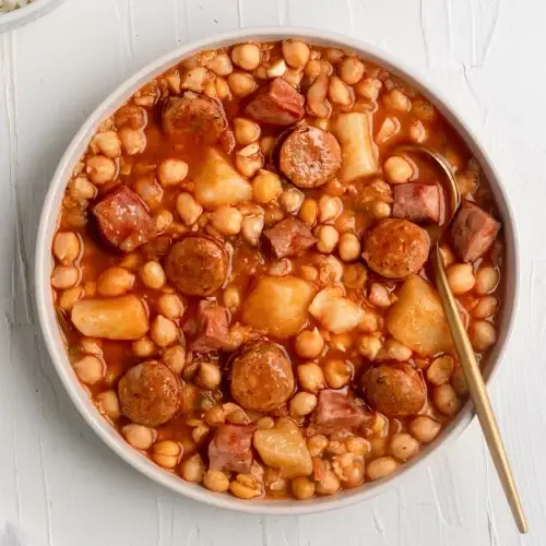 This Potaje de Garbanzo is a hearty Cuban chickpea stew made with garbanzo beans (or chickpeas), chorizo, ham, veggies, and potatoes. Perfect for any day of the week or time of year! Serve with rice, sliced avocado, or some crusty bread. Your home will smell so delicious after making this stew!