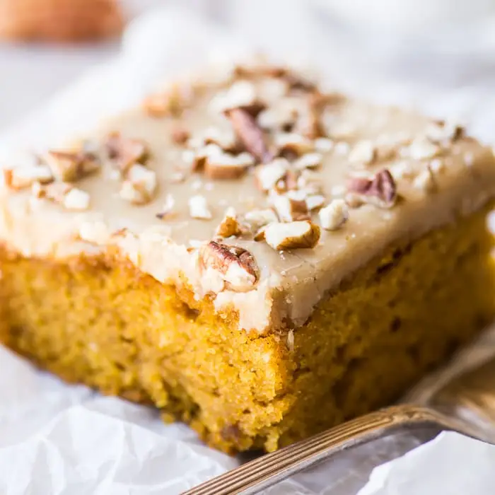 Pecan Praline Pumpkin Cake is my favorite new pumpkin dessert recipe, and that’s saying a lot. This cake has the perfect tender crumb, a lightly spiced pumpkin flavor, and an out of this world pecan praline frosting — get ready to drool.