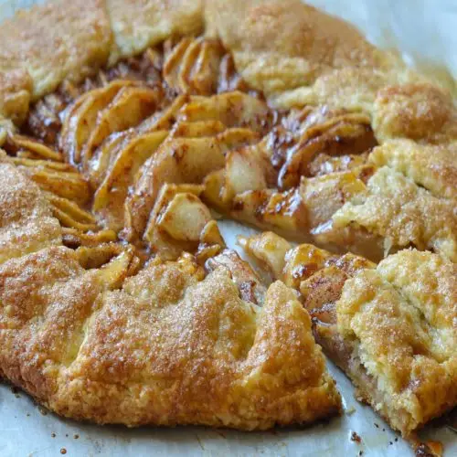 Like an apple pie without the pan, this French apple tart consists of a thin layer of cinnamon-scented apples atop a buttery, flaky crust.