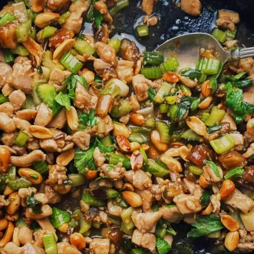 - Remove skillet from heat and stir in fried peanuts and chopped cilantro.
