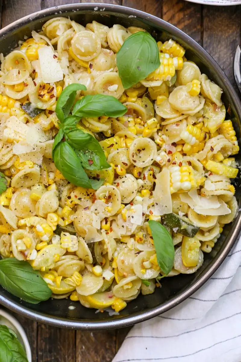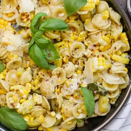 This summer pasta recipe with zucchini, squash and corn is the perfect way to celebrate the season. Loaded with seasonal vegetables, fresh herbs and a delicious white wine lemon butter sauce, you’re going fall in love with this dish.
