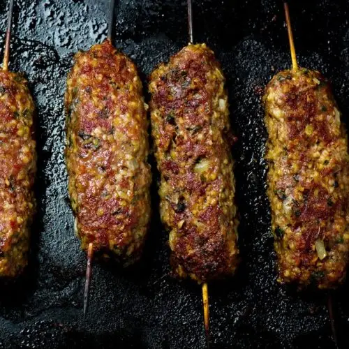 Ground lamb paired with RawSpiceBar’s spicy, freshly ground baharat, pistachios, garlic, onion, parsley, and salt make for easy, yummy Turkish inspired lamb kofta kebabs.