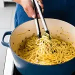 Add the pasta and 1 tablespoon of salt and cook, stirring often, until the strands are flexible but still very firm in center, about 5 minutes.