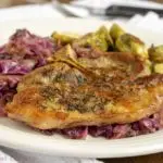 Bring a taste of fall to your table with this German-inspired dish of apple cider pork chops with red cabbage. Everything is braised to tender, flavorful perfection!