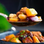 Do a quick-release, remove the lid, and add in the diced parsnip, carrot and beans.