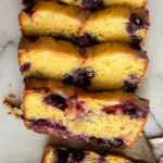 - Tossed the blueberries with a tablespoon of the dry ingredients so that they wouldn’t sink, then folded them into the batter all at once