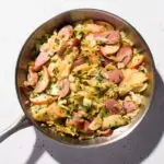 Cover and cook without stirring until the sausages and apples are warmed through, another 3 to 5 minutes.