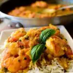 Serve shrimp and sauce over a bed of cooked basmati rice, garnishing with more basil.