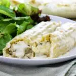 This white manicotti is stuffed full of delicious, flaky crab meat, smothered in a creamy bechamel sauce. Be sure to use the freshest crab you can find as seafood quality certainly makes a difference. This is a decadent seafood pasta dish that the whole family can enjoy.