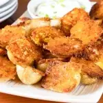 Carefully remove the potatoes from the pan with a spatula making sure to keep the parmesan coating on the potatoes. Use a pairing knife to separate the potatoes if needed.