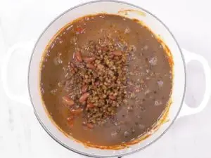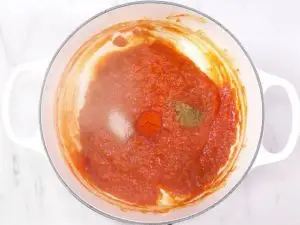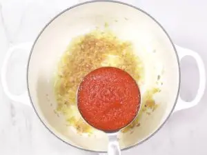 Add the 1 cup of prepared tomato puree (210 grams) and saute for a while.