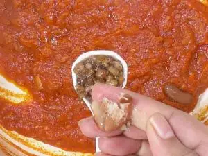 Saute until the masala cooks well and turns thick. The masala begins to smell good when done.