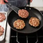 Add 3 patties to skillet and cook until browned on both sides and meat registers 160 degrees, about 4 minutes per side.