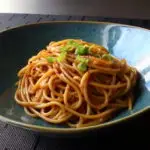 One the pasta is completely sauced, transfer to plates and top with some chili flakes and sliced scallions.