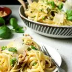 Add the parmesan and begin tossing and stirring the pasta to incorporate and melt the cheese.