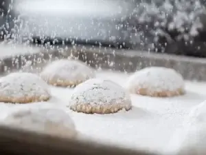 Tumble each piece in the powdered sugar until fully coated and roll into a ball.