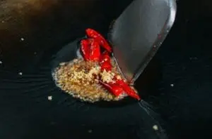 After about 15 seconds, add the garlic.