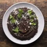 In Oaxaca, black beans are a part of almost every meal. Though they often are served whole, we especially liked the balanced, complex flavor and smooth, velvety consistency of refried black beans. Lard gives these beans a rich meatiness, but coconut oil is a good vegetarian substitute. The beans can be stored in an airtight container in the refrigerator for up to a week. We liked this topped with cotija and fresh cilantro.