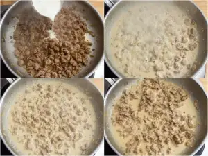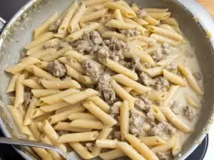 Season with salt and pepper to taste and reduce the heat to the lowest possible setting to keep the sauce warm and prevent it from over-reducing.