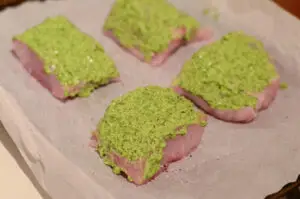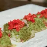 Spoon 1-2 tablespoons of pesto on each sea bass portion.