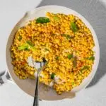 Add the corn and scallion whites, then cook, stirring often, until the corn begins to brown, about 5 minutes.