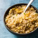 For a simple, comforting fried rice to accompany our Japanese Steakhouse Steak and Vegetables, we started by boiling the rice in plenty of water. This eliminated the need for leftover rice by effectively cutting the cooking time in half and rinsing away excess starch that can result in stickiness. To create the sweet and savory hibachi flavor profile, we finished our fried rice with garlic, scallions, soy sauce, and mirin, a Japanese sweetened rice wine.