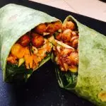 Serve in a wrap with some spinach leaves and thinly sliced carrot, cucumber sticks and cilantro leaves if desired.