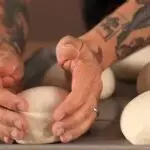 Stop the mixer. Use your fingers to pull away any dough clinging to the hook, and scrape the sides and bottom of the bowl with a bowl scraper or rubber spatula. Check the bottom of the bowl for any unincorporated flour. Turn the dough over and press it into the bottom of the bowl to pick up any stray pieces.
