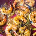 Add shrimp and cook, about 2-3 minutes per side, until shrimp are cooked through. Remove shrimp and set aside.