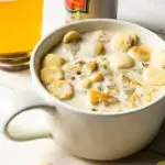 When ready to finish cooking the chowder, drain the whole clams through a fine-mesh strainer set over bowl.